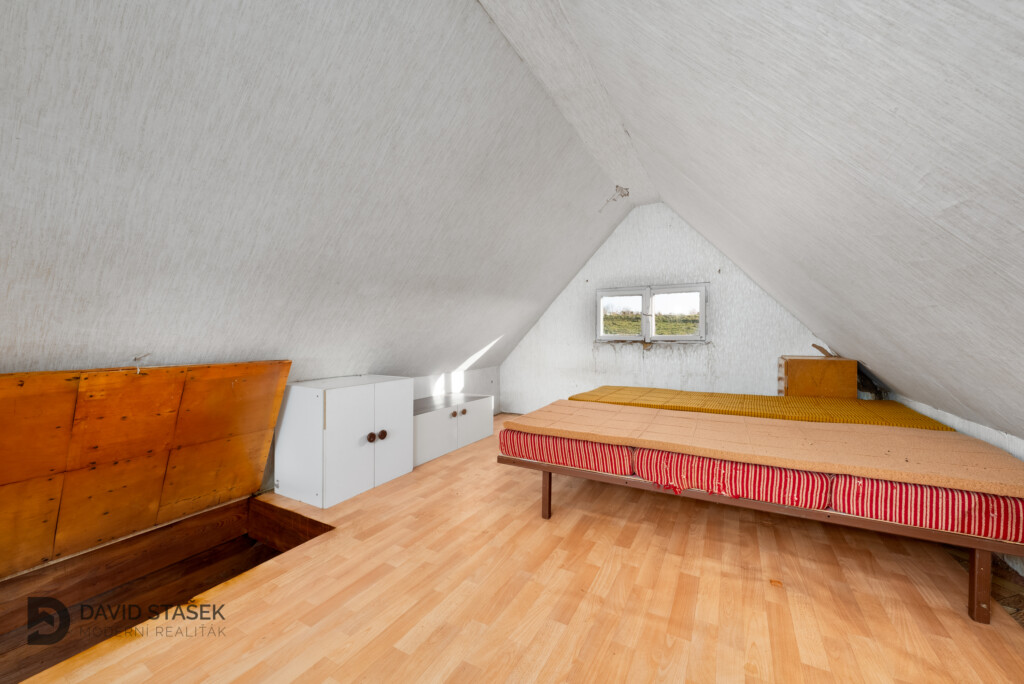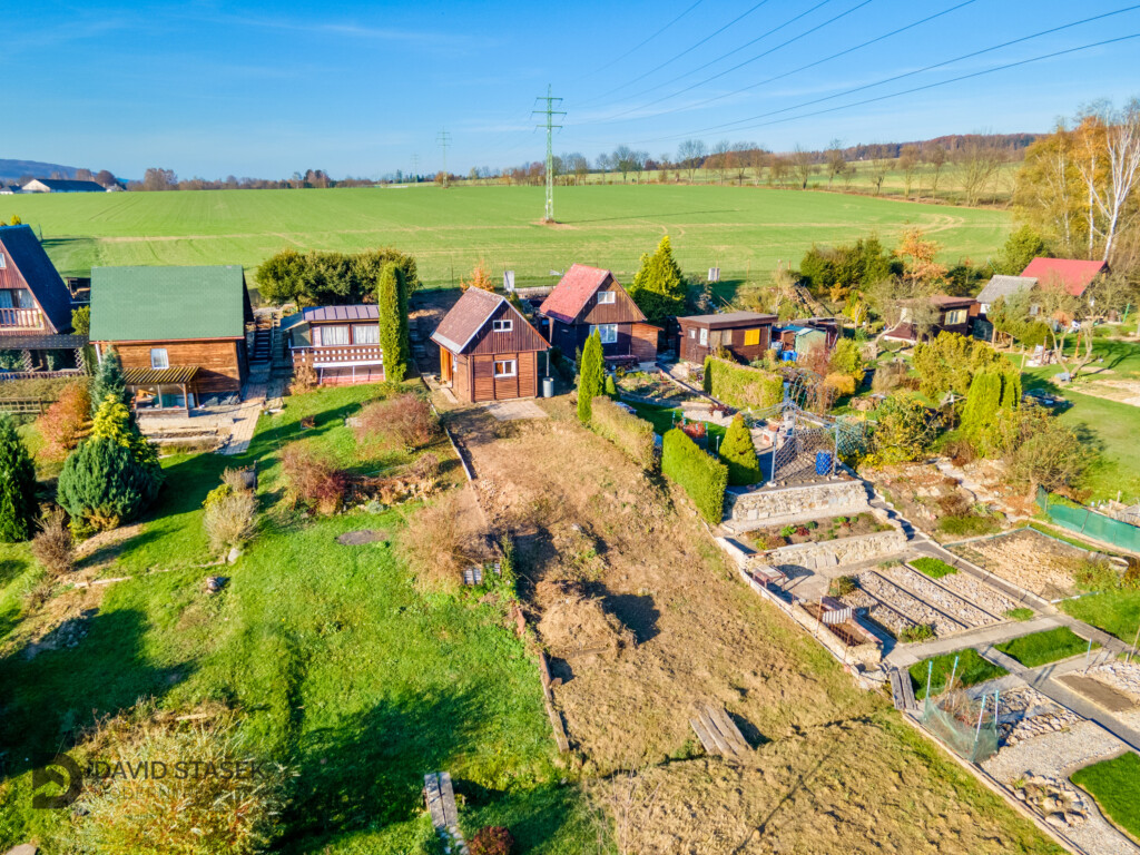 Na pozemku stojí malá, útulná chatička, která pro vás bude sloužit prvotně jako zázemí, případně i na nocleh, ale časem zde můžete vybudovat plnohodnotné místo k rekreaci.