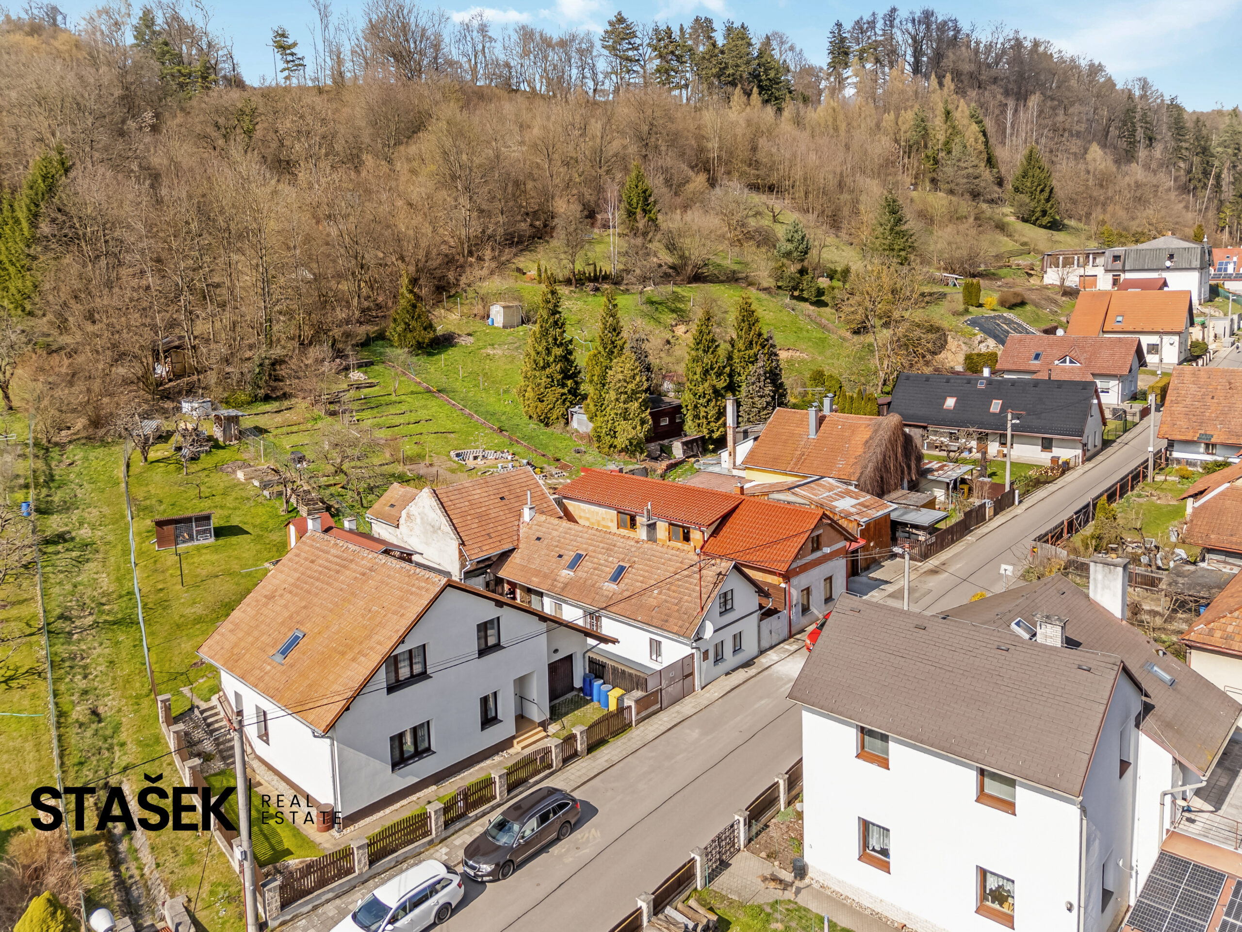 - Zděná stodola, která nabízí široké možnosti využití – dílna, sklad, letní kuchyně – případně rozšíření domu.