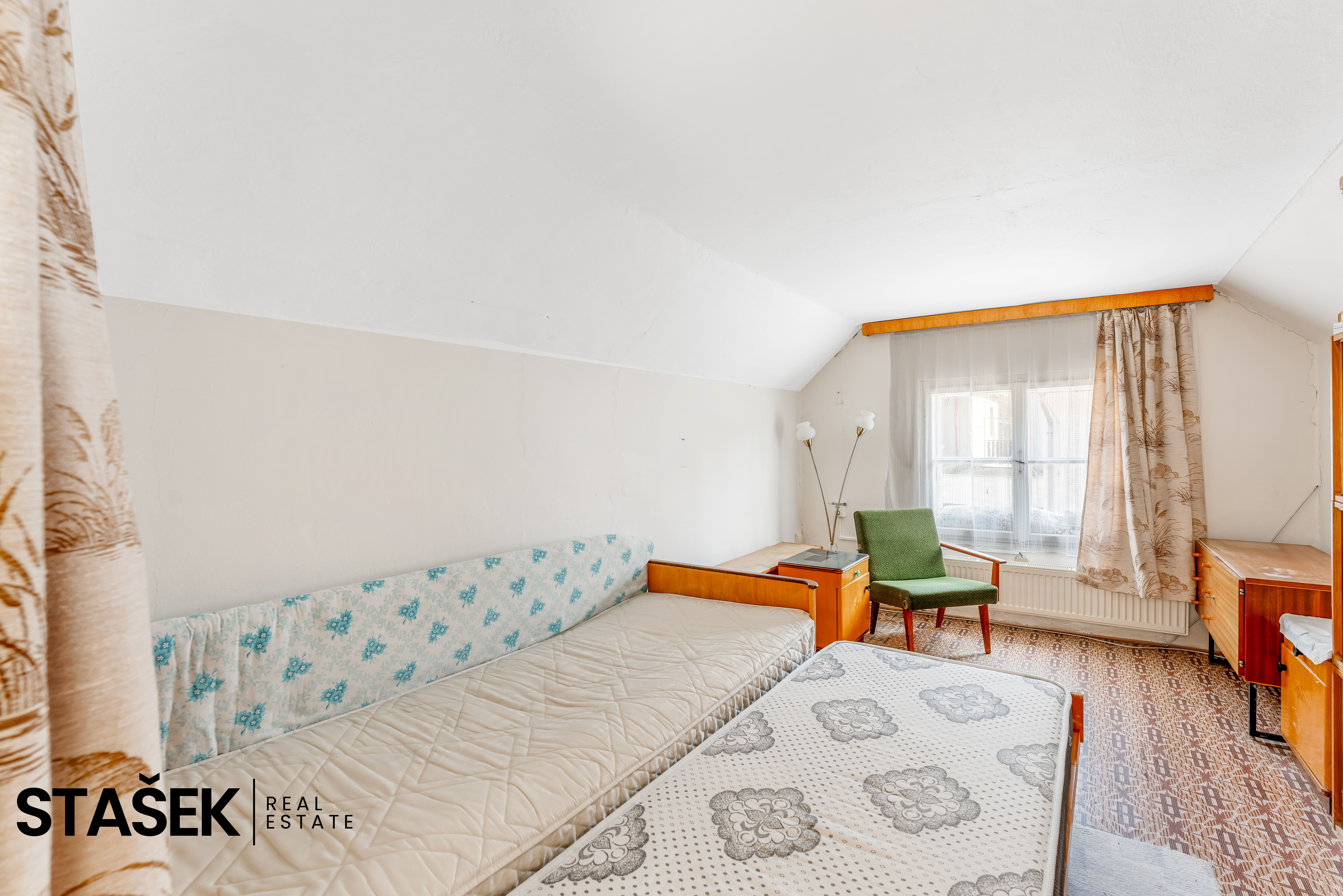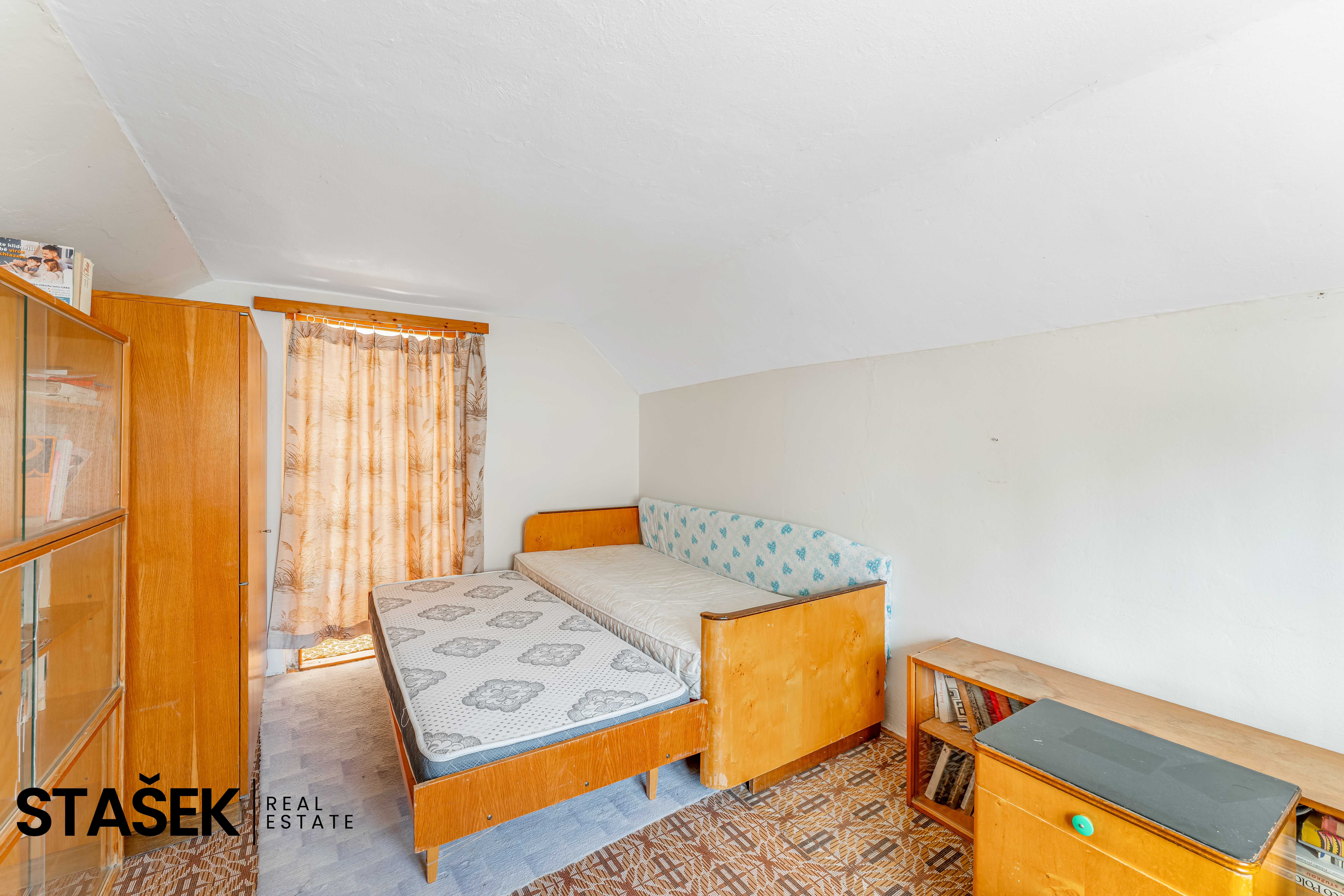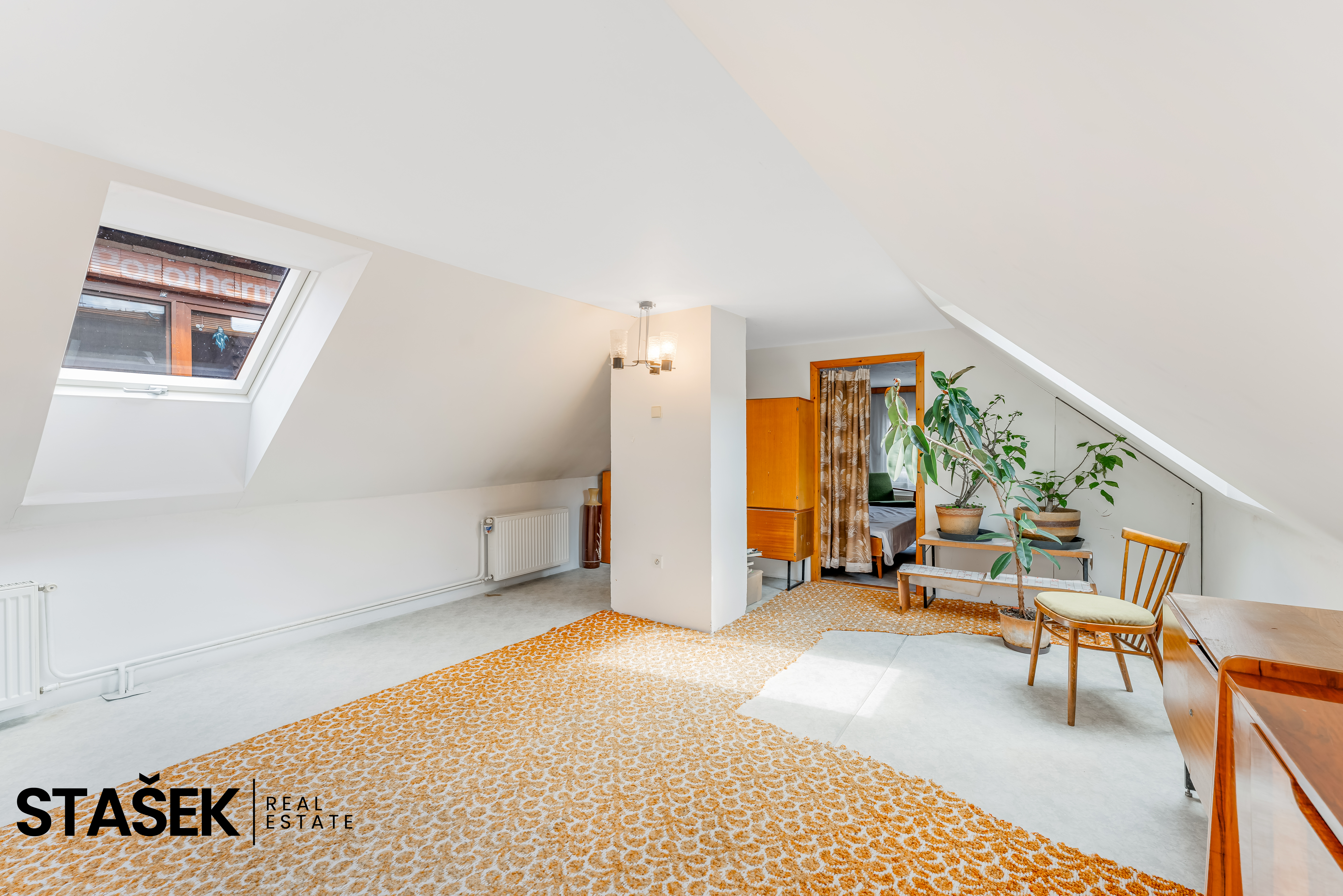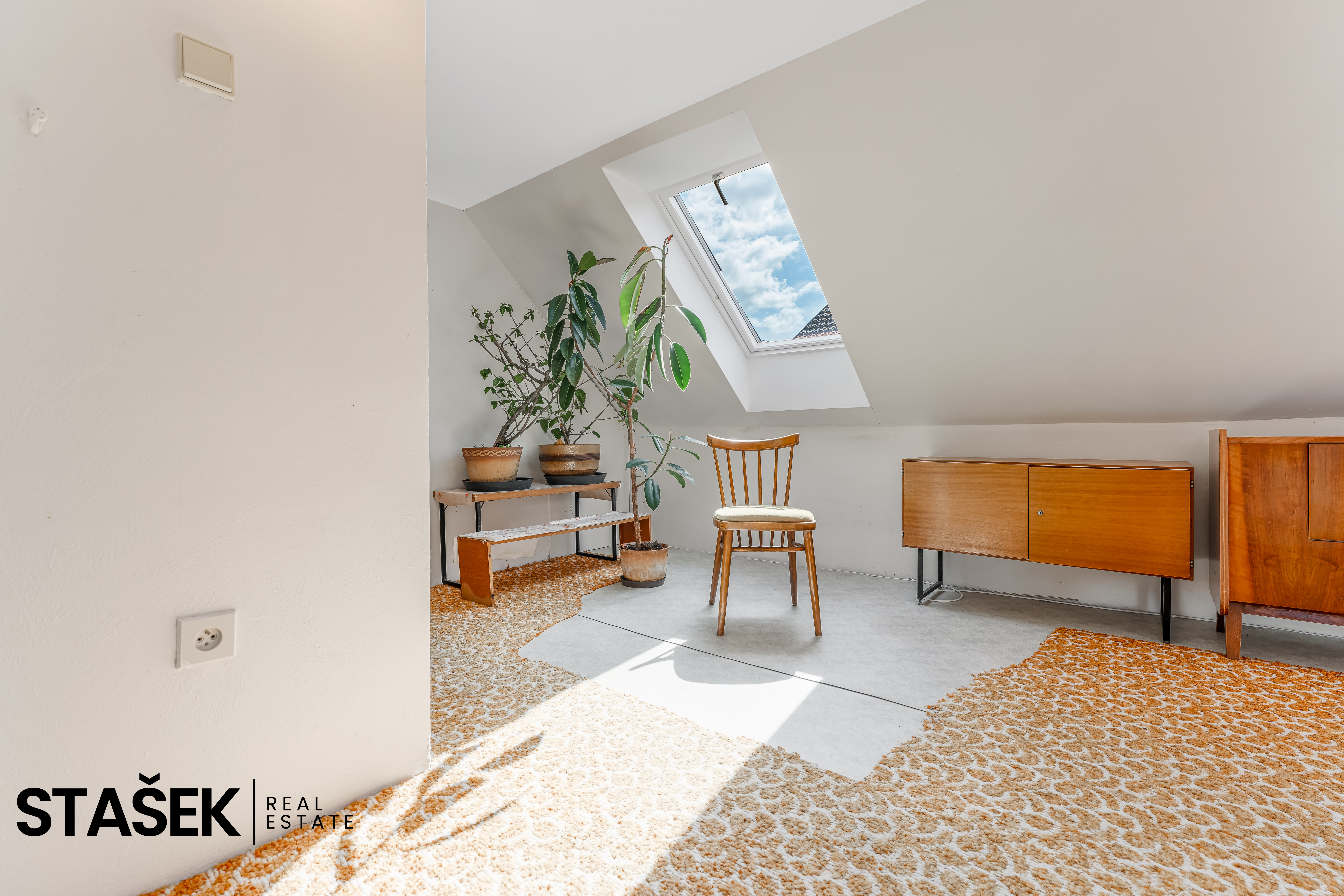 - Sklep a část půdy, která přímo vybízí k vestavbě další obytné místnosti.