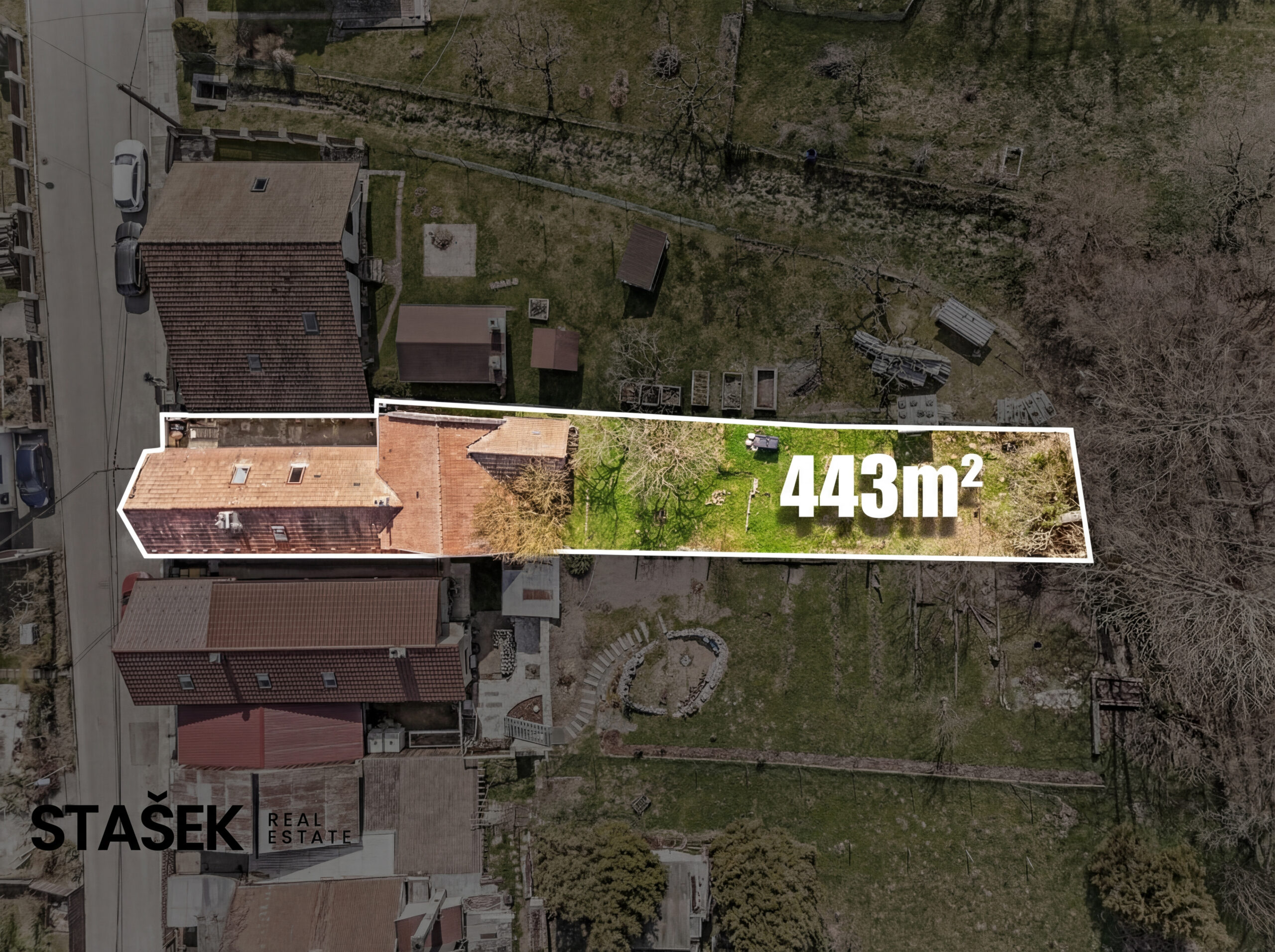 - Pozemek: Celková výměra 443 m²