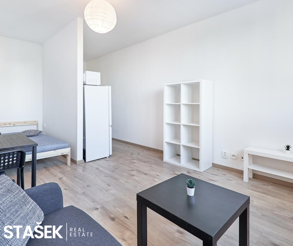 Byt je plně vybavený, veškerý nábytek viditelný na fotografiích v bytě zůstává – stačí se pouze nastěhovat.
